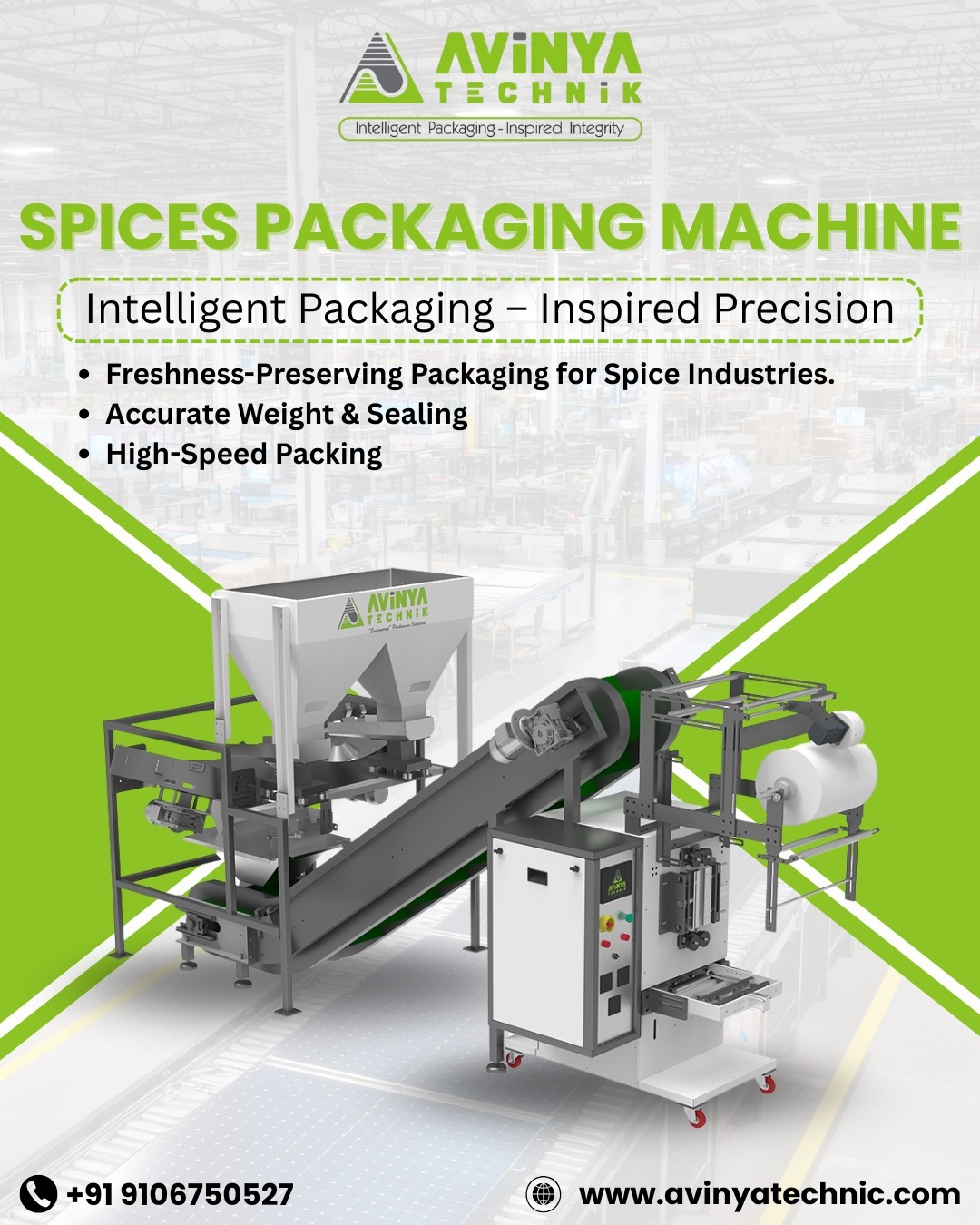 Avinya Technik is a leading Spices Packing Machine Manufacturer in Ahmedabad, delivering advanced automatic and semi-automatic packaging solutions for the spice industry. Our machines are engineered to ensure precise filling, airtight sealing, and hygienic packaging—preserving the freshness, aroma, and quality of spices. As a trusted Spices Packing Machine Supplier in India and Spices Packing Machine Distributor in Gujarat, we provide reliable, high-performance systems for small, medium, and large-scale operations.